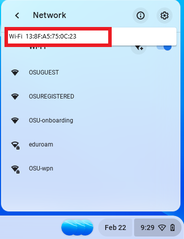 Om op die regte WIFI te koppel benodig IT jou MAC adres van jou toestel sodat dit om die sisteem geverifieer kan word vir sekuriteitsdoeleindes.