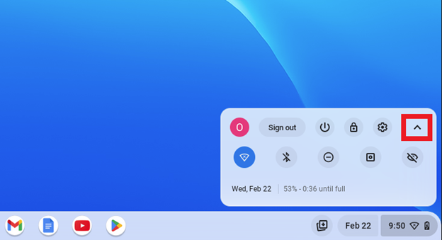 2. Klik op die opwaardse pyltjie regs van die rat ikoon om die Stellings menu op te maak.