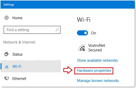 2. Aan die linkerkant, kies WIFI en klik dan op "Hardware Properties" aan die regterkant.