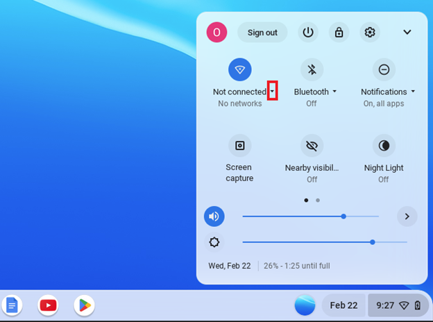 1. Vanaf die Desktop, klik op die WIFI ikoon regs onder op die taskbar.